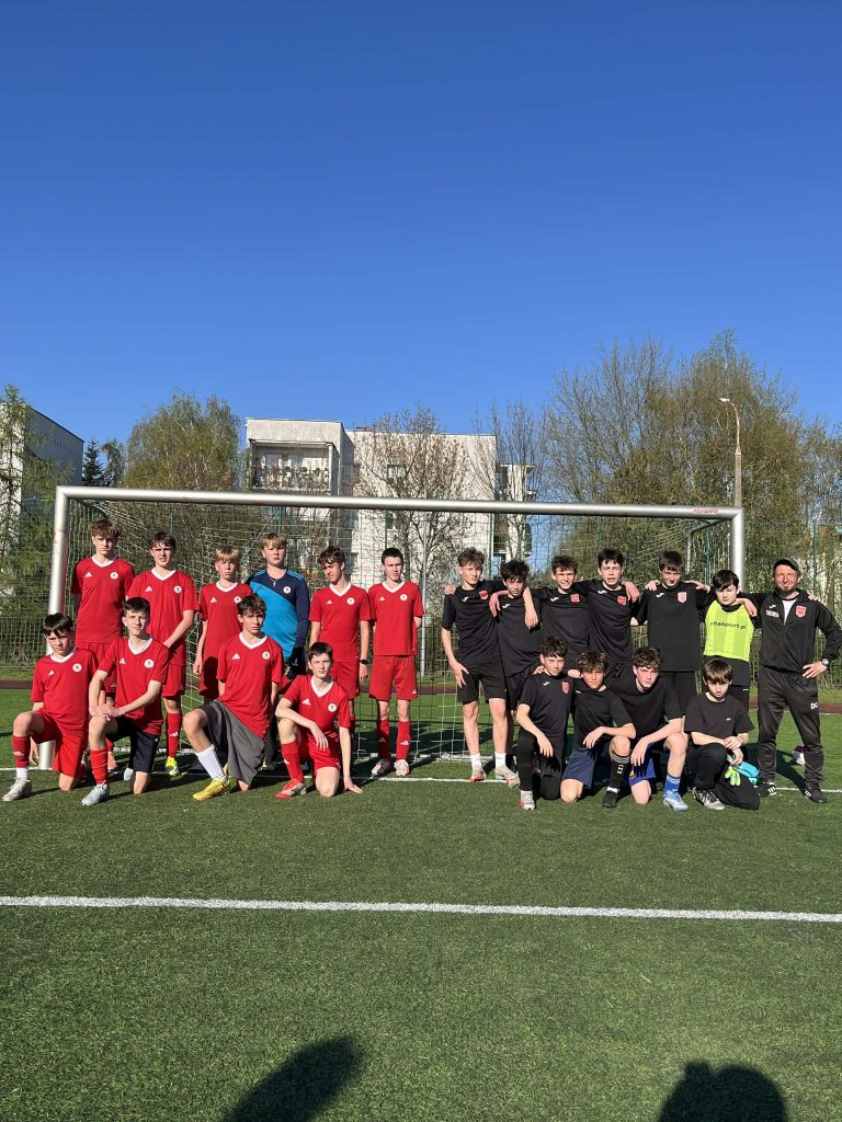 Pierwszy gol padł po dobrze rozegranym stałym fragmencie gry — dośrodkowanie zakończył celnym strzałem głową Staś Idzikowski. Niedługo później podwyższyliśmy prowadzenie na 2:0, gdy Dima popisał się pięknym uderzeniem w długi róg. Rywal zagroził naszej bramce zaledwie dwa razy, jednak świetnymi interwencjami popisał się Antek Jastrzębski, który w tym meczu — z konieczności — wystąpił na pozycji bramkarza.