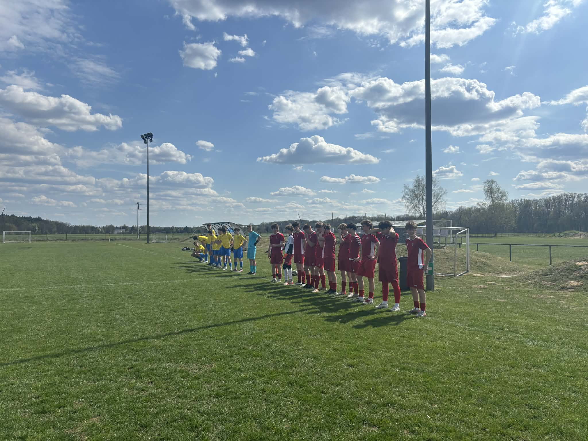 Pierwsza połowa mało zorganizowana w naszym wykonaniu. Dużo niedokładności, brak wyjścia na pozycję, stres. Goście wykorzystali swoje szanse i do przerwy przegrywaliśmy 0:4. Jednak po przerwie podjęliśmy walkę, poprawiliśmy niektóre aspekty naszej gry. Zaczęliśmy dłużej utrzymywać się przy piłce i stwarzać sytuacje podbramkowe. Po kilku minutach po dośrodkowaniu z rzutu rożnego przez Kubę Węgrzyniaka, Filip Karczewski zdobywa ładną bramkę głową. Na kolejną bramke trzeba było chwilę zaczekać. Po następnych atakach i przewadze pod bramką przeciwnika, o piłkę w powietrzu walczy Borys Groszkowski a piłka trafia do bramki.